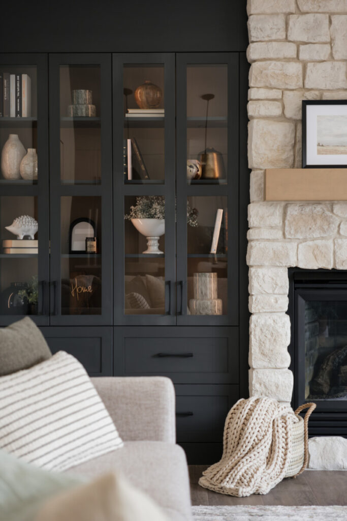 This is the perfect season to think about how your fireplace wall can do more – not just visually, but functionally. Closed cabinetry below helps tuck away the everyday clutter, while open shelving above gives you space to show off books, ceramics, or even a few seasonal touches like fall foliage and candles. The right balance of open and closed storage keeps things polished but approachable.