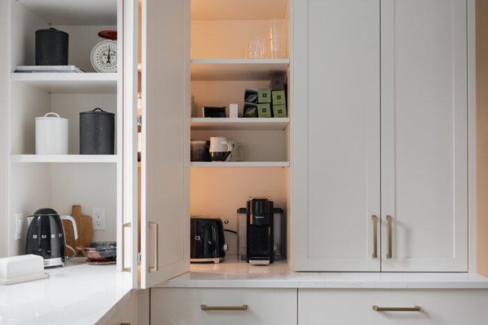 Framed cabinets lend themselves to traditional or highly detailed looks – especially with inset doors and decorative moldings. Frameless cabinets offer a minimalist, modern aesthetic with smooth, uninterrupted surfaces, perfect for more minimal kitchens. That said, frameless can be designed in a traditional or transitional style just as easily, while still delivering the full-access storage people love.