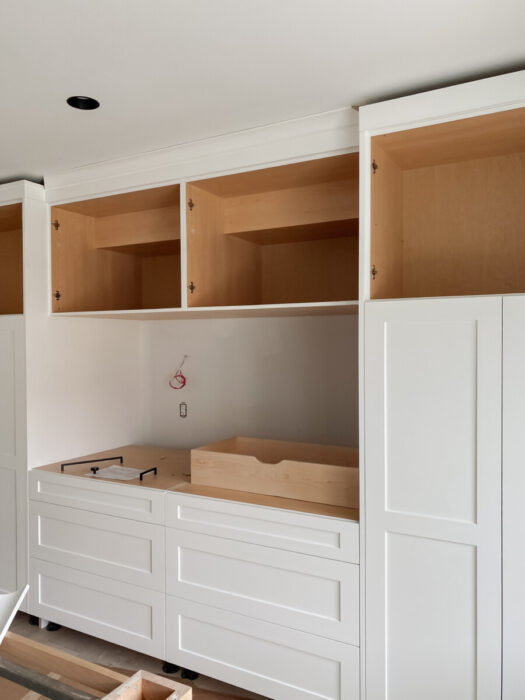Face frame cabinets can be more forgiving; the frame may hide minor installation variances and the large reveals between fronts doesn’t require as precise alignment. However, because cabinet sides are thinner, framed cabinets are screwed to each other through the front face frame itself – which isn’t always the cleanest look when the cabinet is open.