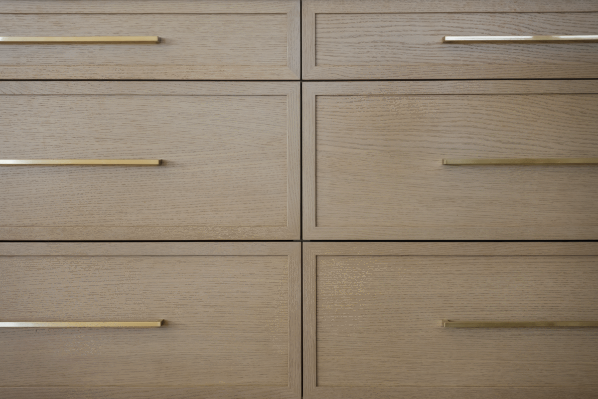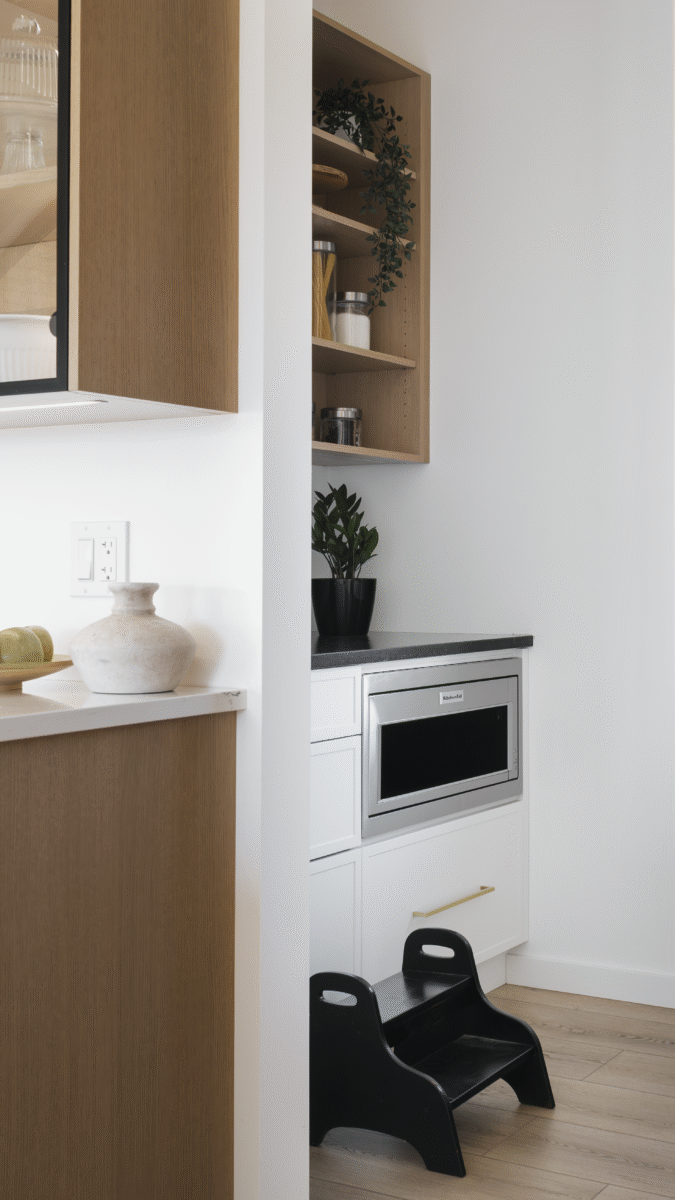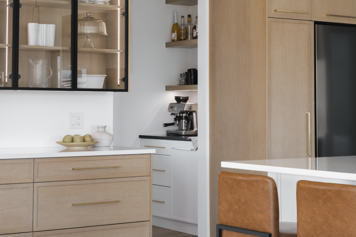Finishes: Uptown on White Rift Oak, Chantilly Lace on HDF | Countertop: Silestone – Ethereal Noctis, Cinder Craze