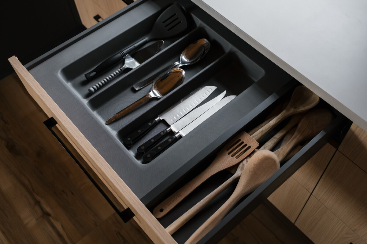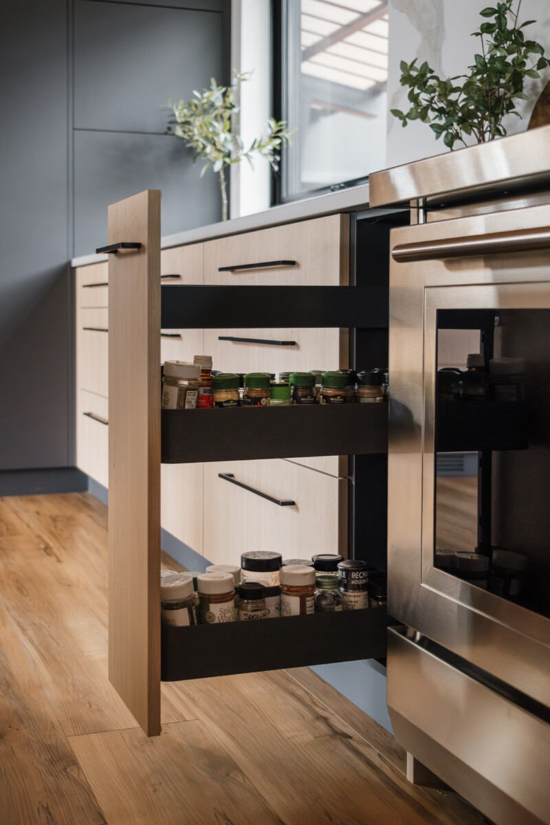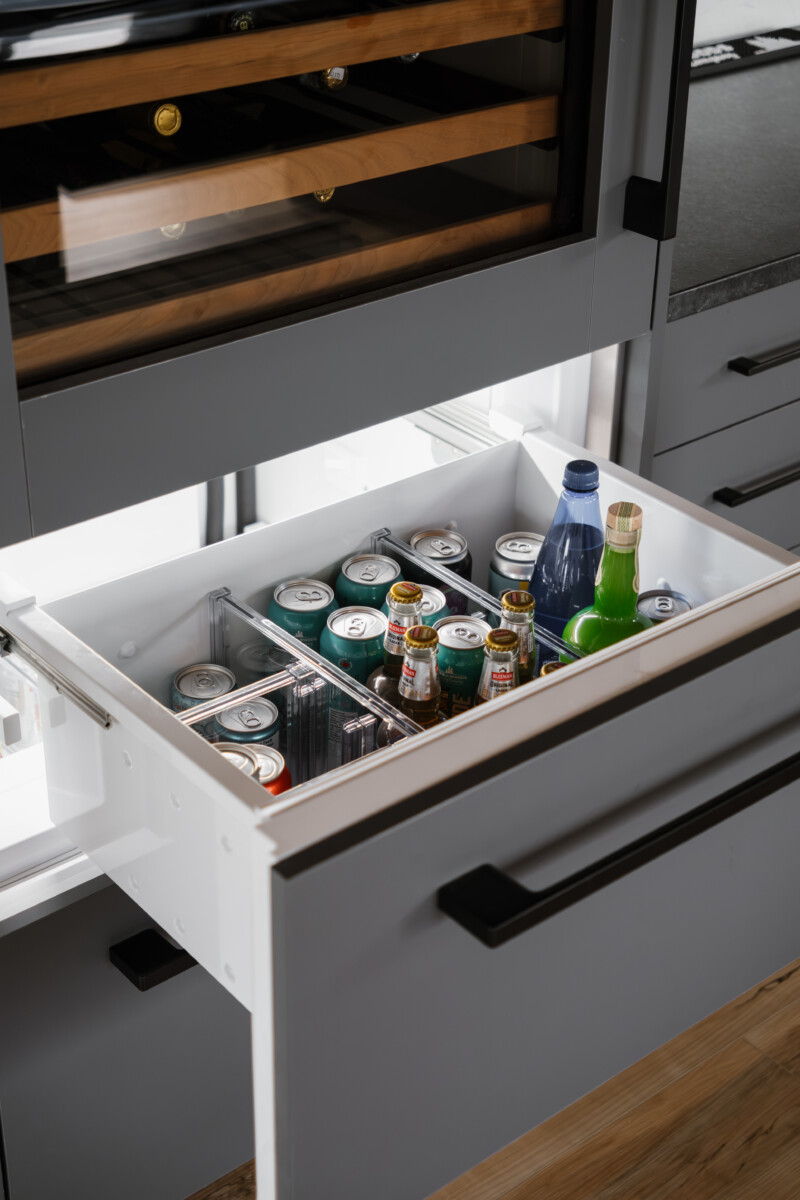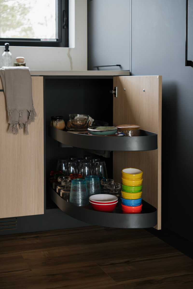 Finishes: Graphite Grey UV Lacquer | Countertop: Black Cambrian Granite