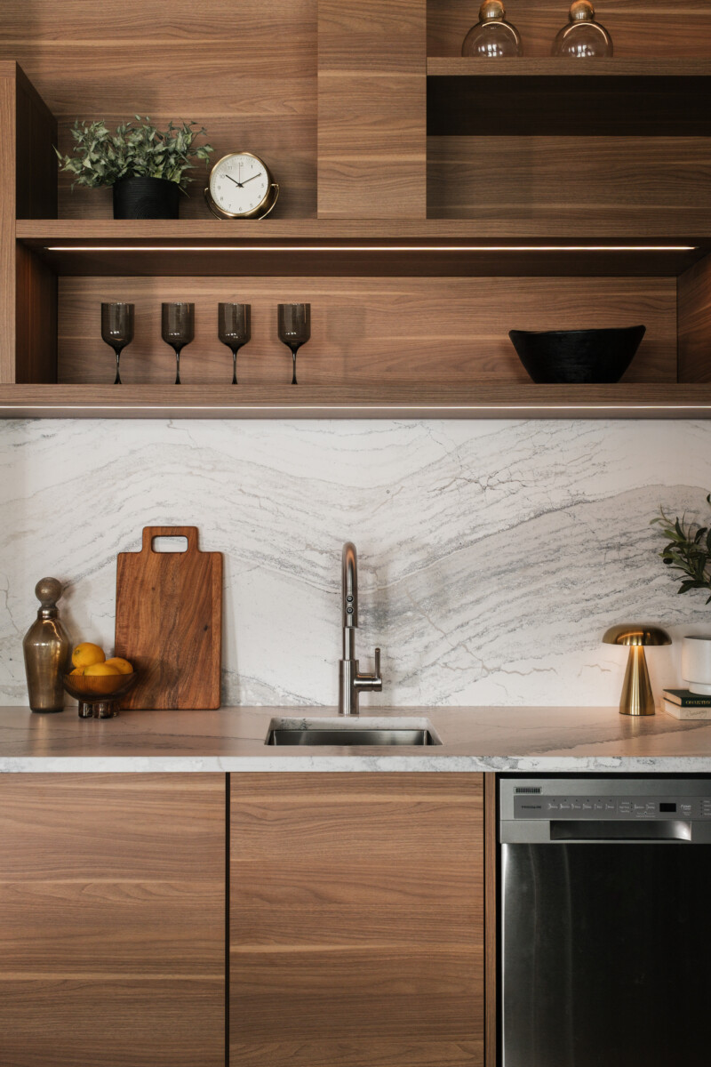 Finishes: Light Tennessee Walnut TFL | Countertop: Cambria – Windsor Steel Satin Ridge
